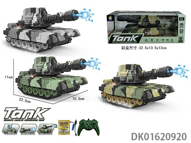 2.4G 10通遥控履带式打水弹坦克带音乐灯光包电,3色混装