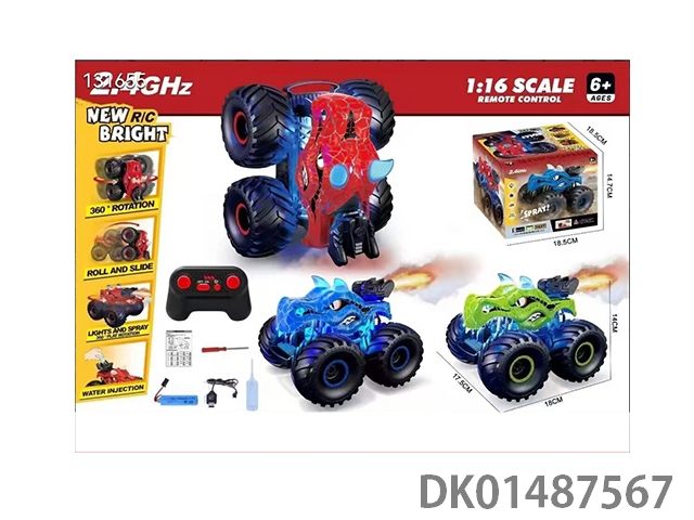 裂纹喷雾恐龙遥控特技车遥控恐龙车壳大轮喷雾车