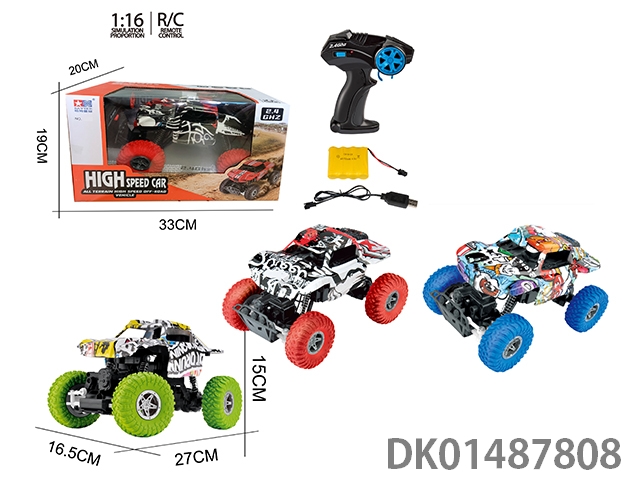 1:16包电2.4G四驱动遥控涂鸦攀爬车(3色混装)