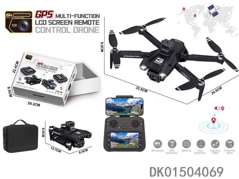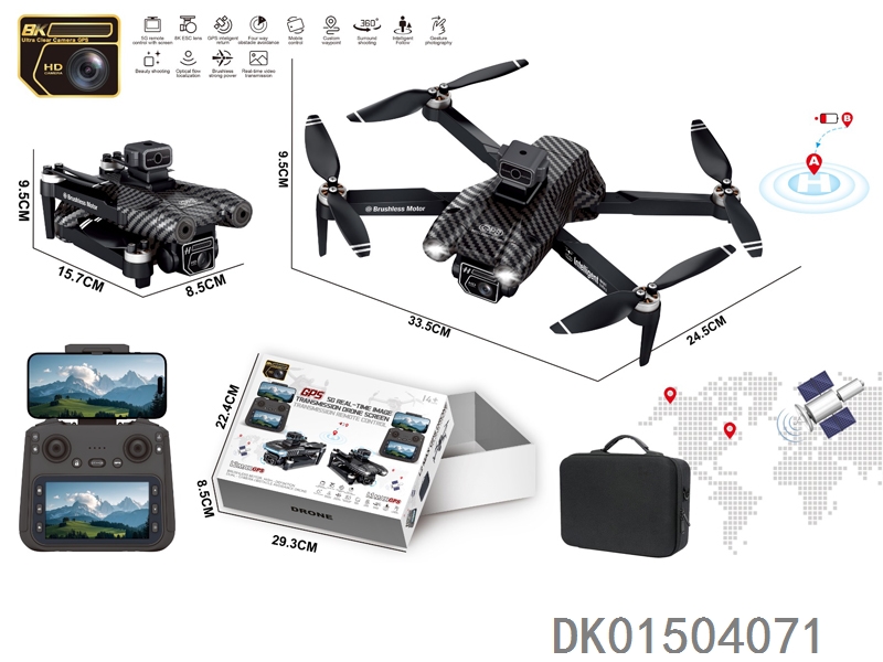 GPS 5G传输中继器 4.3寸屏控(WiFi实时传输)无刷电机无人机WiFi高清8K双摄像头带光流跟随电调摄像头4面避障