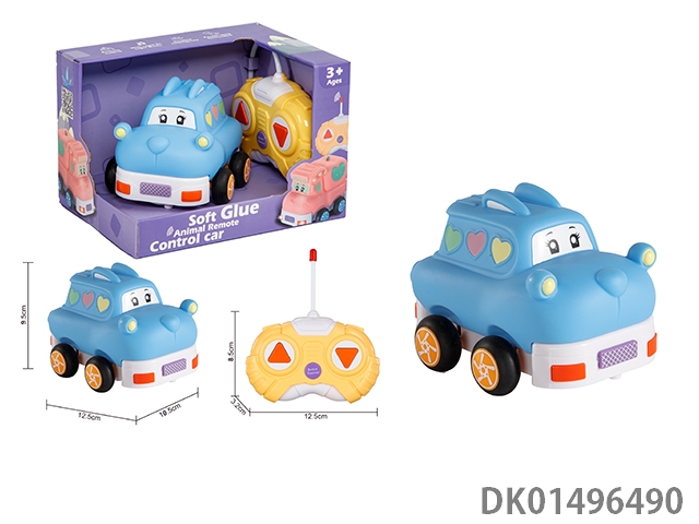 二通遥控搪胶蓝色车(带灯光带音乐)