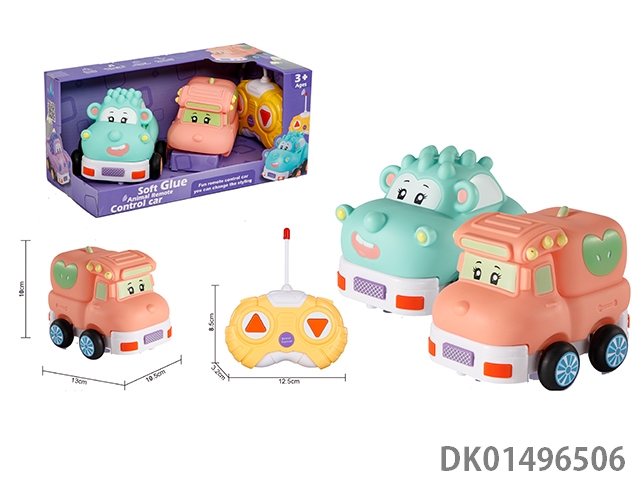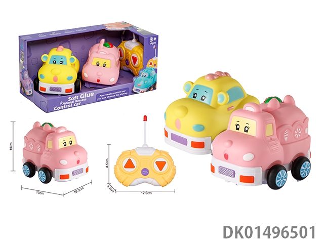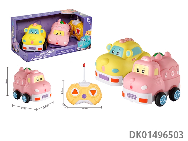 二通遥控搪胶粉色车+黄色壳(带灯光带音乐)