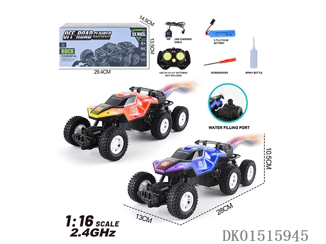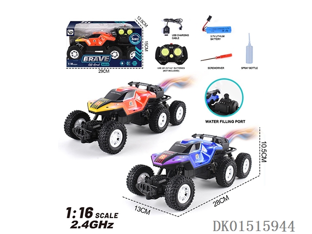 1:16 5通六轮2.4G四驱PVC透光喷雾车(包电)