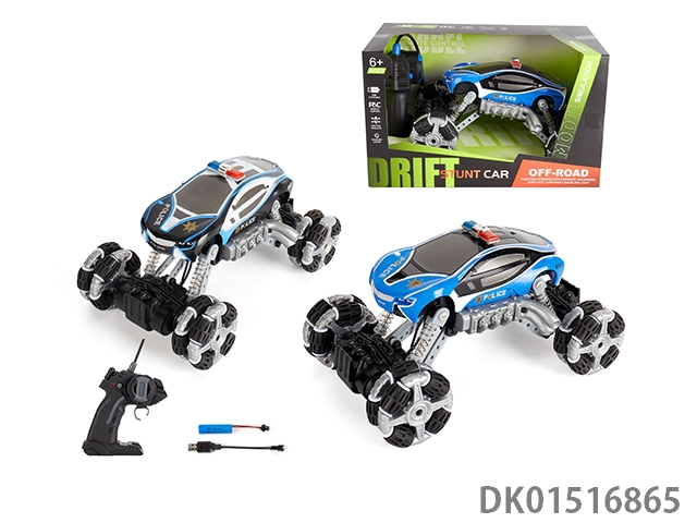 四驱灯光一键开门漂移轮带喷雾遥控车(炫彩警车版)