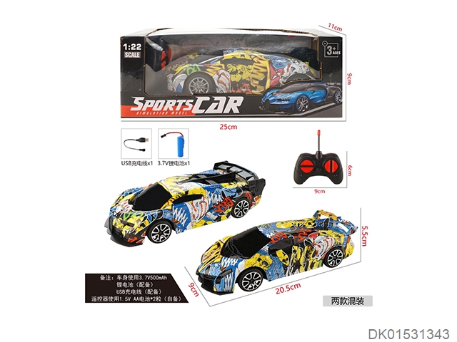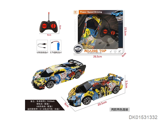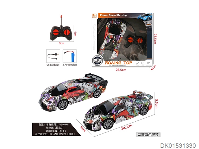 2.4G带灯光喷雾5通遥控骨架赛车(配3.7V锂电池+USB线+抽水瓶)