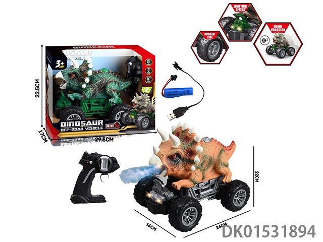 1:14霸王龙5通1键演示带灯光包电遥控车