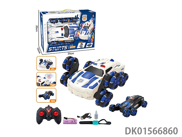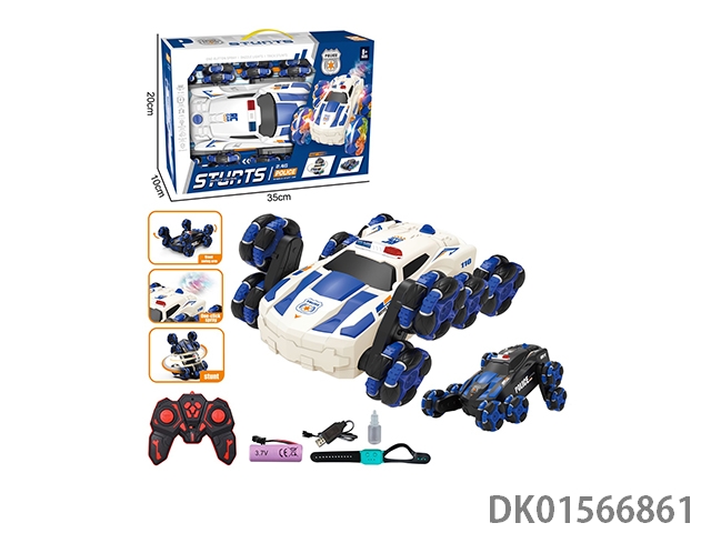 2.4G小8轮警车特技遥控车带灯光喷雾