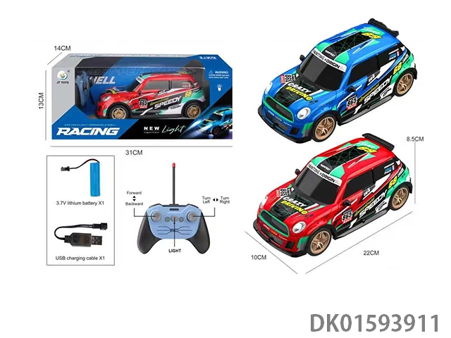 喷镀灯光遥控车 喷镀红/绿2色 1:18(包)车身3.7V充电锂电池、USB充电桩、遥控器(2AA不包)4通