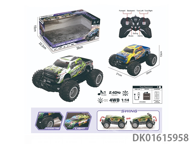 1:14灯光音乐2.4G 4驱越野摇摆车PVC(包电)30M