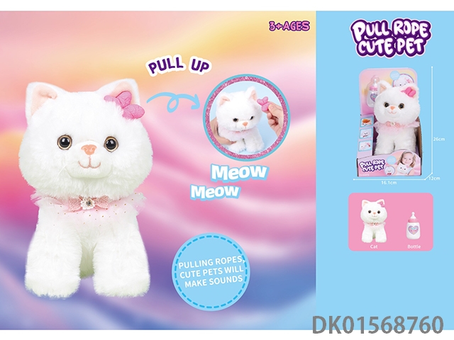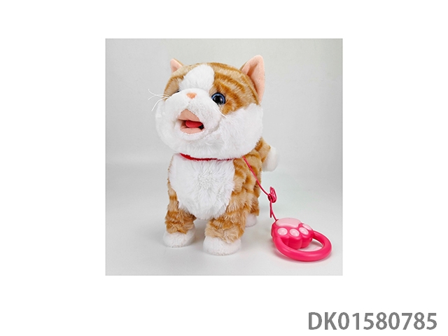 吐舌音乐走路牵绳电动毛绒猫(黄)