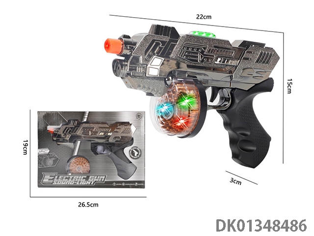 电动枪转动炫彩灯光声音太空枪(不包3粒5号电池)
