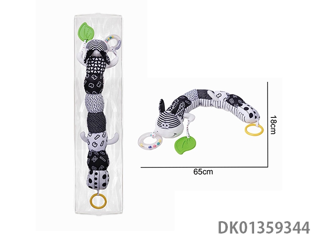 毛绒黑白大象毛毛虫响纸摇铃牙胶安抚玩具
