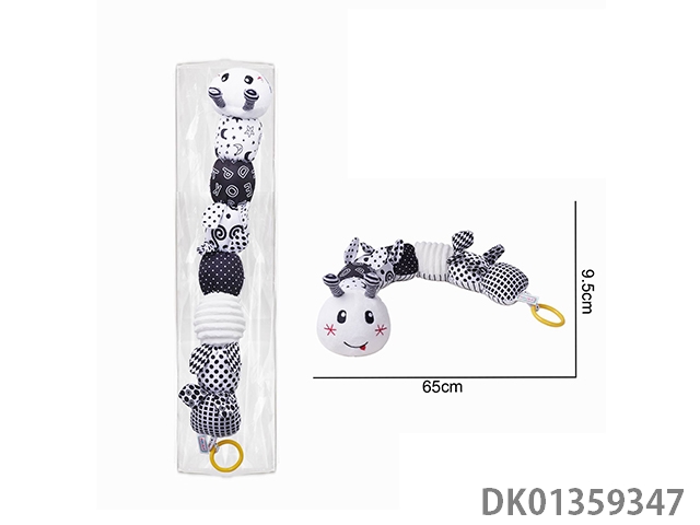 毛绒黑白毛毛虫响纸摇铃牙胶安抚玩具