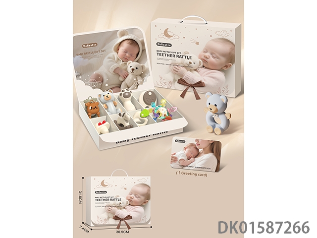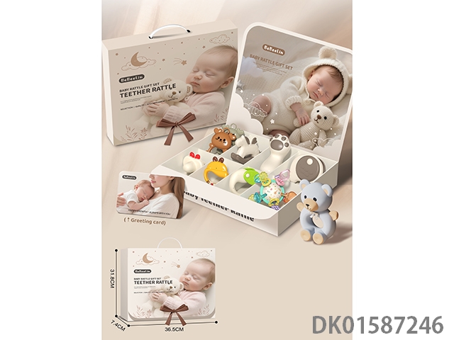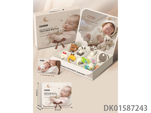 婴儿摇铃礼盒套装+曼哈顿球/手抓球+可水煮摇铃(9PCS)送贺卡