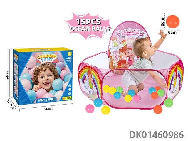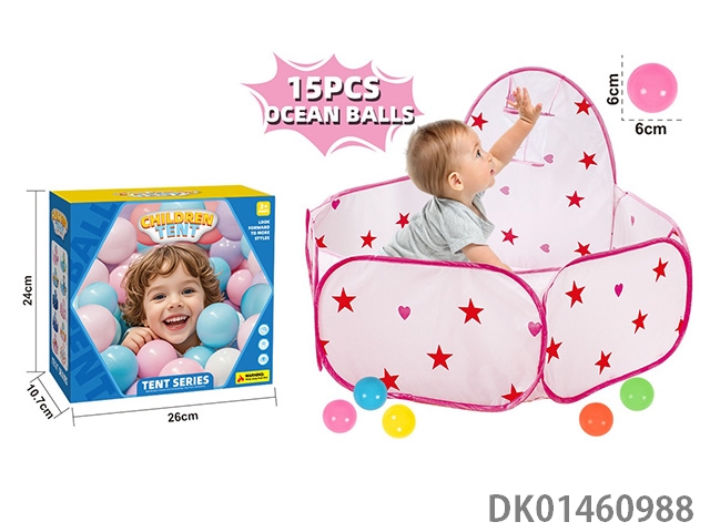 儿童帐篷球池-带投篮-彩盒包装-粉色星星主题