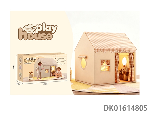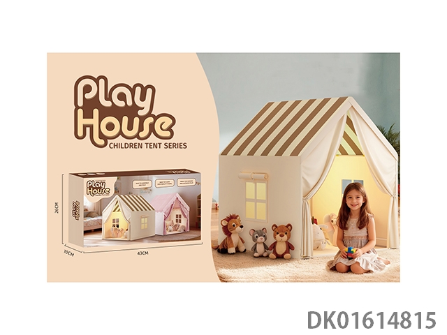 儿童帐篷童趣屋棕色方格款过家家游戏屋大房子条纹简约风格欧美格调
