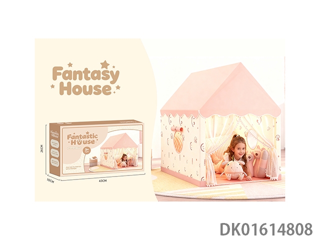 儿童帐篷童趣屋粉色纯色款过家家游戏屋大房子条纹简约风格欧美格调