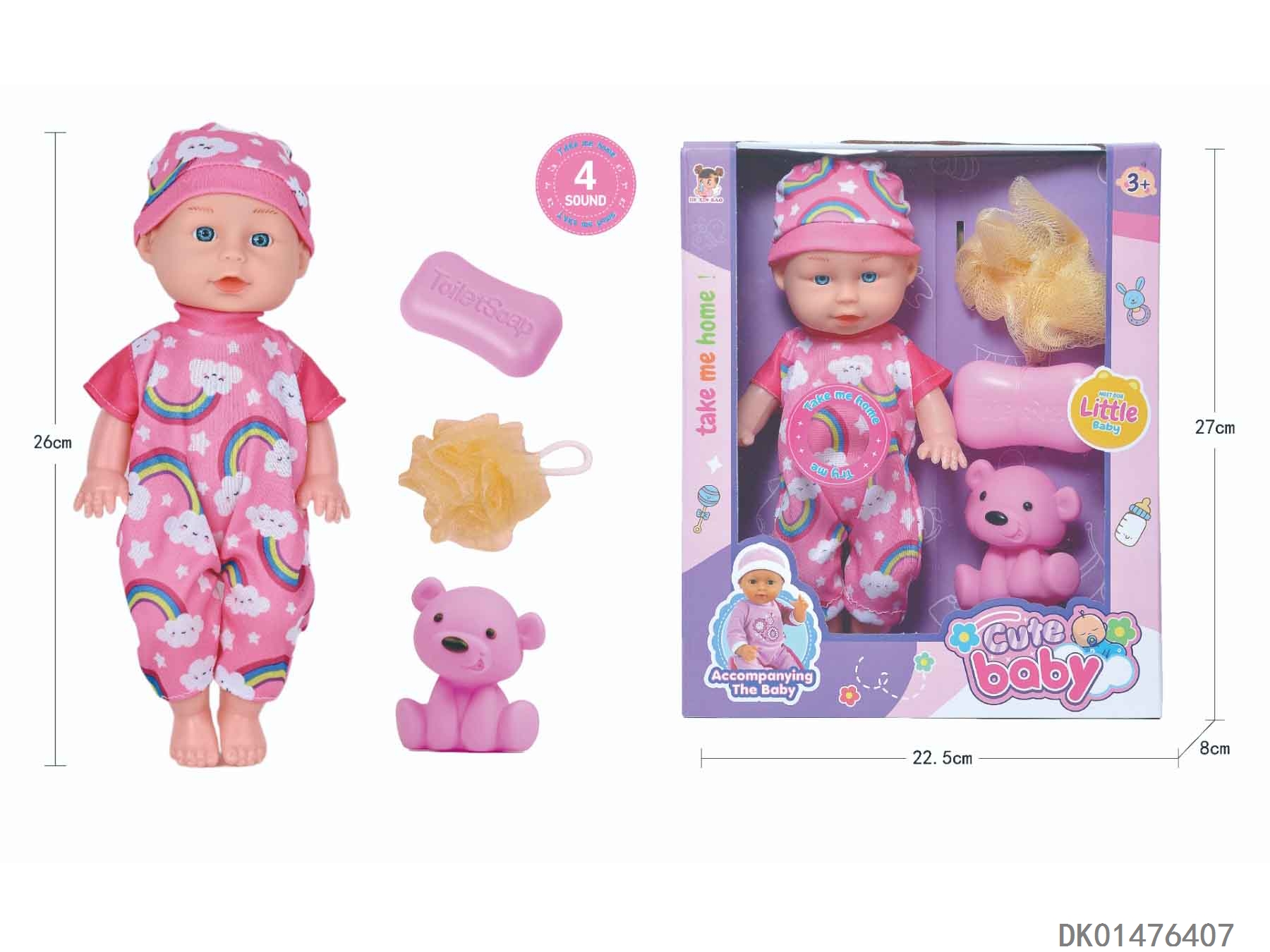 11寸娃娃带四声IC声音(配件:搪胶小熊,香皂,沐浴球)