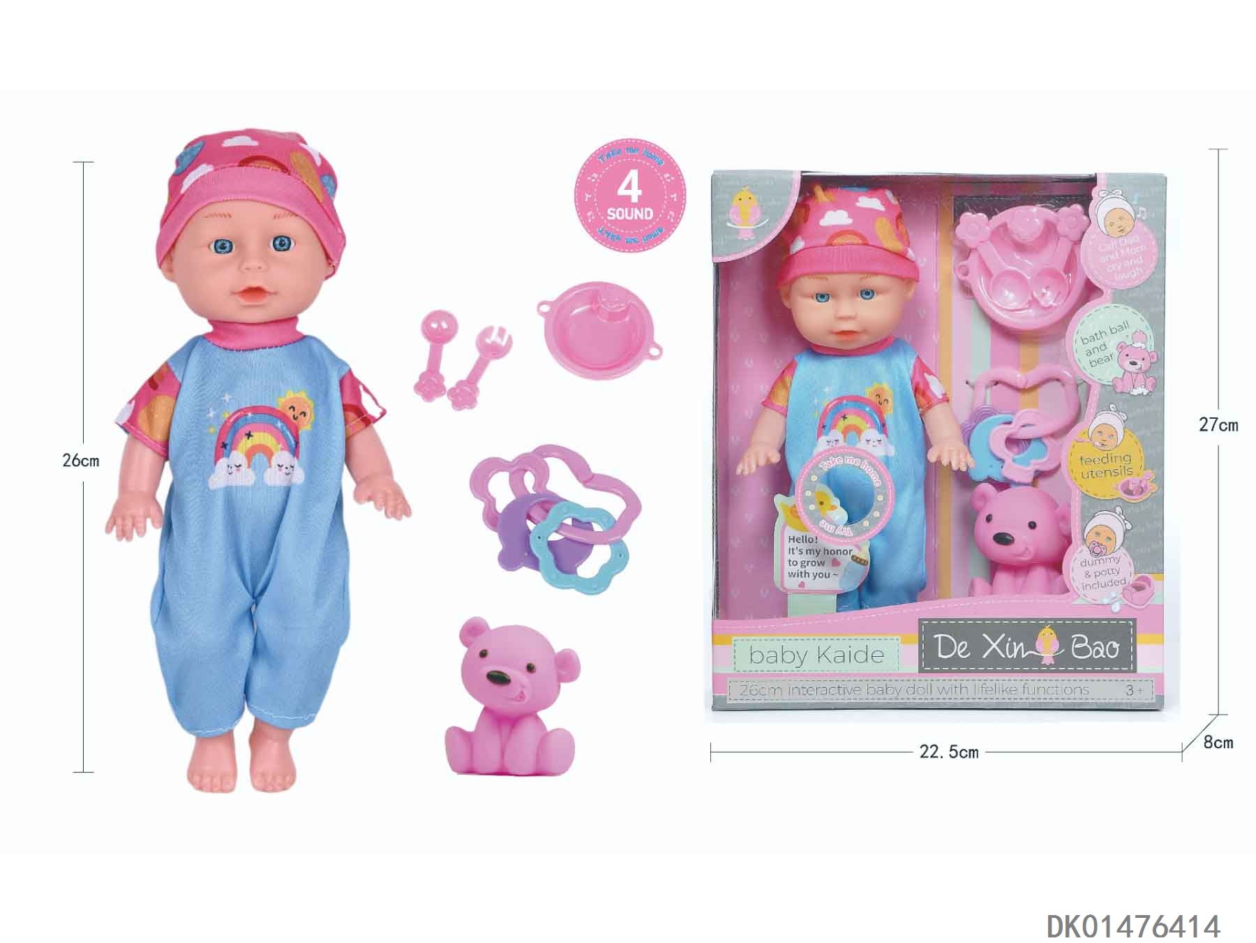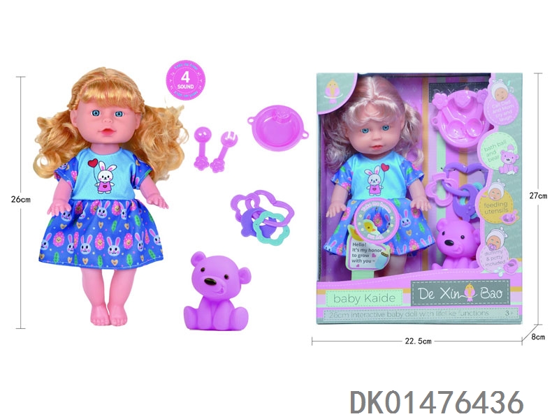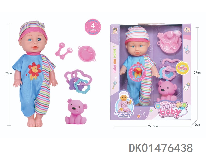 11寸娃娃带四声IC声音(配件:餐具,搪胶小熊,摇铃)