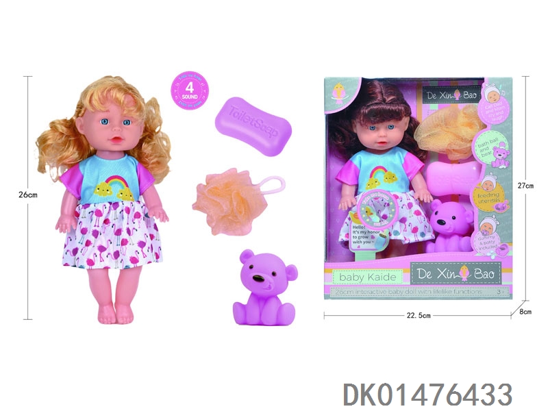 11寸女孩娃娃带四声IC声音衣服混装(沐浴球,香皂,小熊)