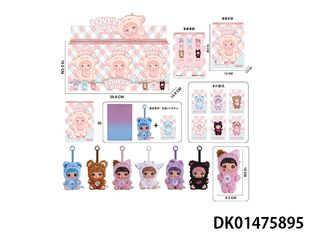 7寸5关节5D眼睛盲盒糯米儿Nommi毛绒潮玩偶公仔钥匙扣挂件手办坐姿搪胶PVC材质+卡片x1(6款混装)(6PCS/盒)