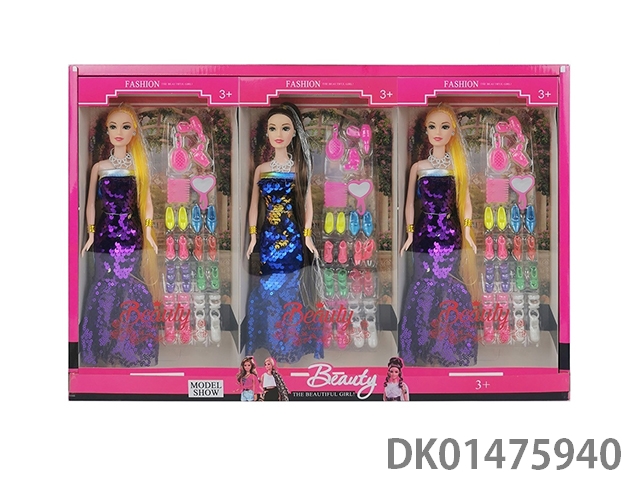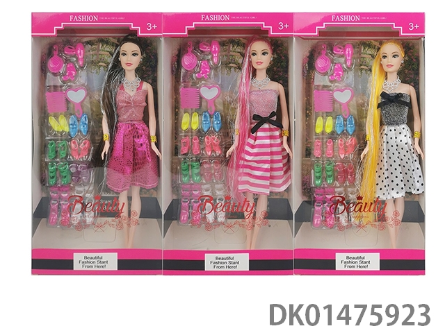 新款11.5寸实身时尚公主带配件三款混装展示盒3PC,3pcs/盒