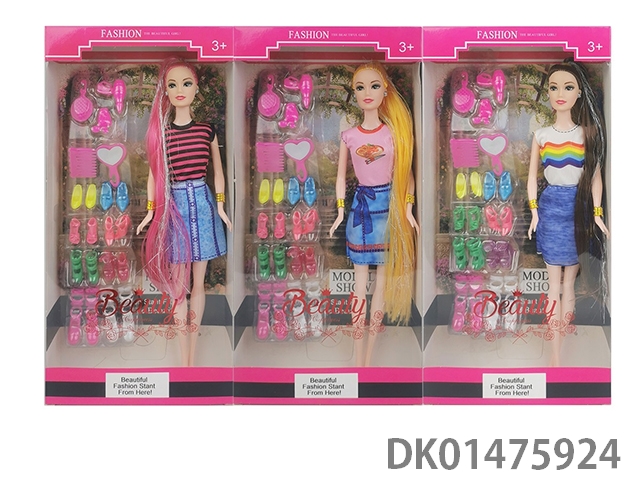 新款11.5寸长发实身时装公主带鞋子吸塑三款随机混装