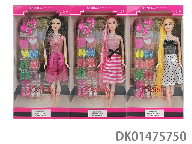 新款11.5寸长发实身时装公主带鞋子吸塑三款随机混装