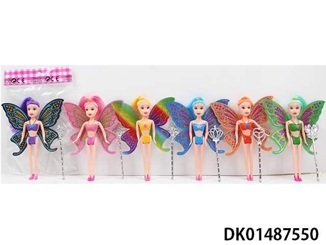 【英文】7寸 7厘米 实身 彩印眼 时尚花仙子娃娃+仙女棒 多款混装