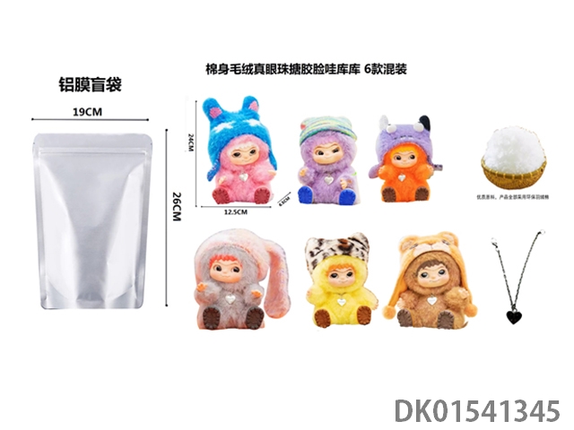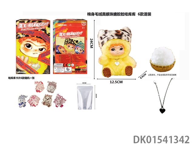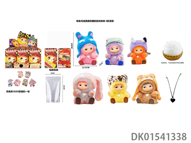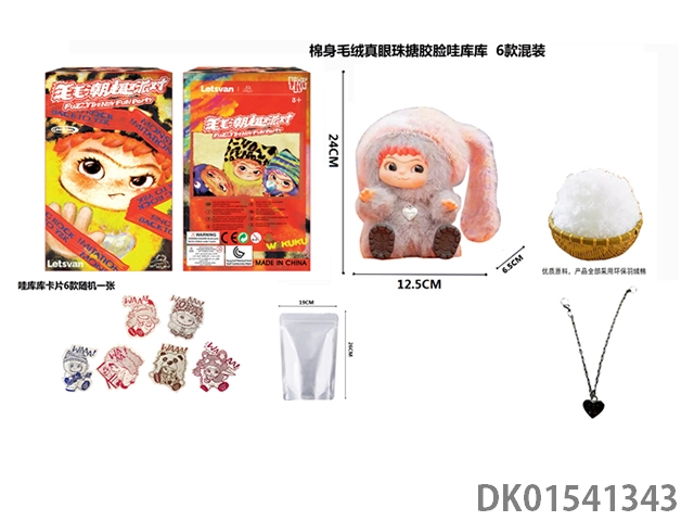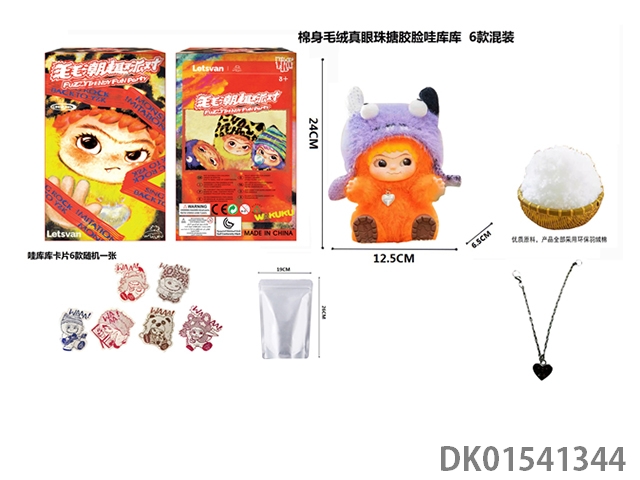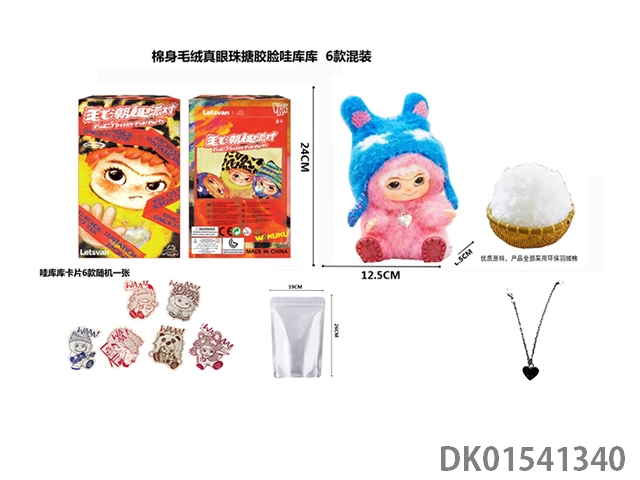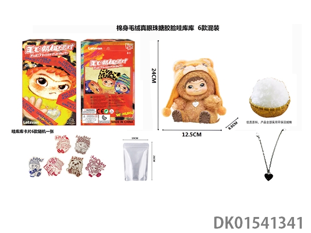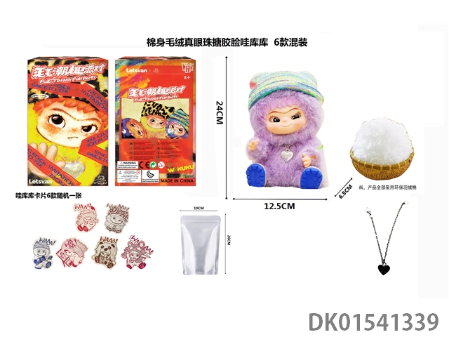1比1 大号版棉身1.0毛毛潮趣派对系列毛绒棉身搪胶脸真眼珠WAKUKU带钥匙扣带6款卡片随机一张 6款6PC