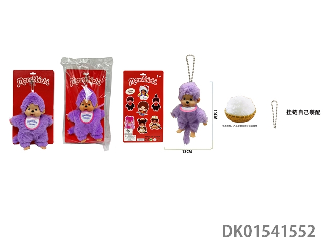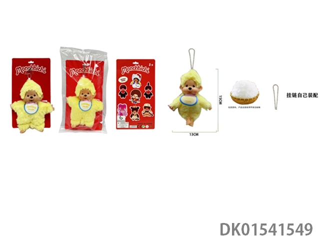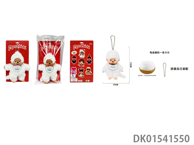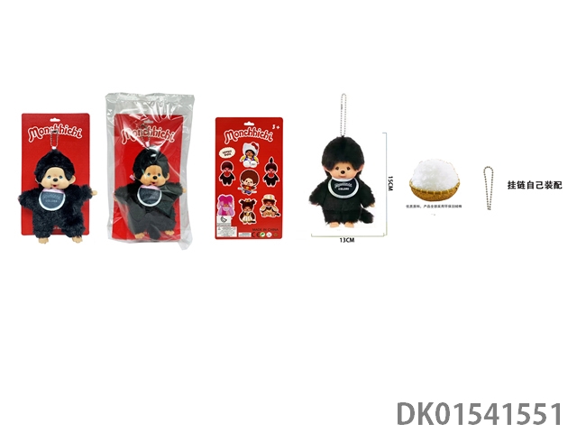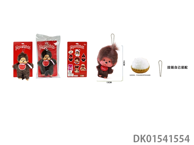 1比1 日系高貂毛绒PP棉身搪胶脸 15CM Monchhichi奶嘴彩色围兜蒙奇奇 带珠链自己装配