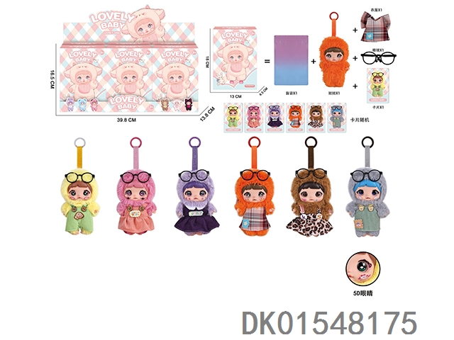 7寸5关节5D眼睛盲盒糯米儿 Nommi PVC搪胶毛绒套装娃娃带钥匙扣挂件+眼镜(6款混装)(6pcs/box)