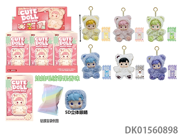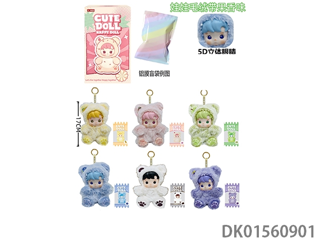 7.5寸高品质泡泡玛特带香味HACIPUPU哈奇噗噗5D眼珠五关节可动搪胶毛绒娃娃钥匙扣挂件加娃娃卡片(展示盒+盲盒+盲袋 6色混装 6PCS)