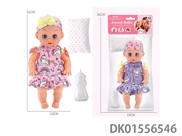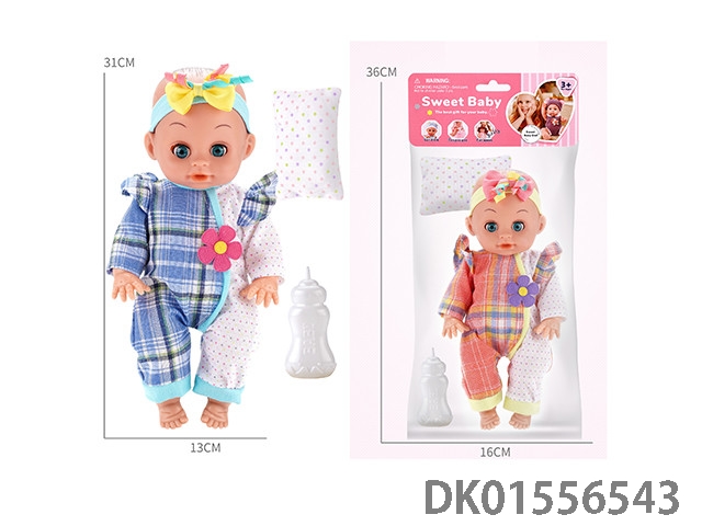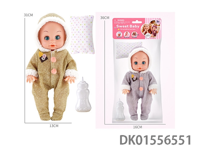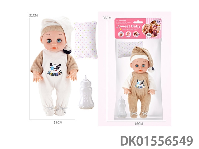 31CM(吹气身喝水撒尿)羊毛布睡衣白人娃娃+枕头+奶瓶