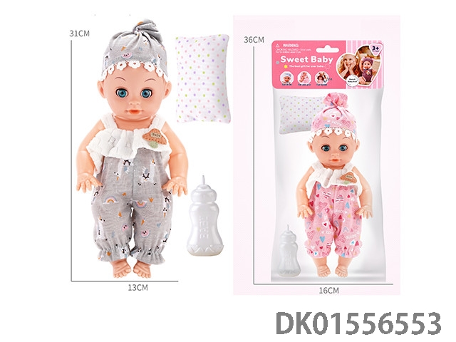 31CM(吹气身喝水撒尿)吊带裤白人娃娃+枕头+奶瓶