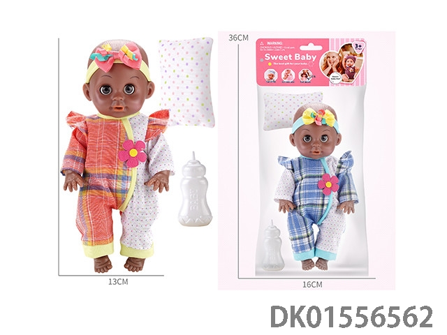 31CM(吹气身喝水撒尿)格子布睡衣黑人娃娃+枕头+奶瓶