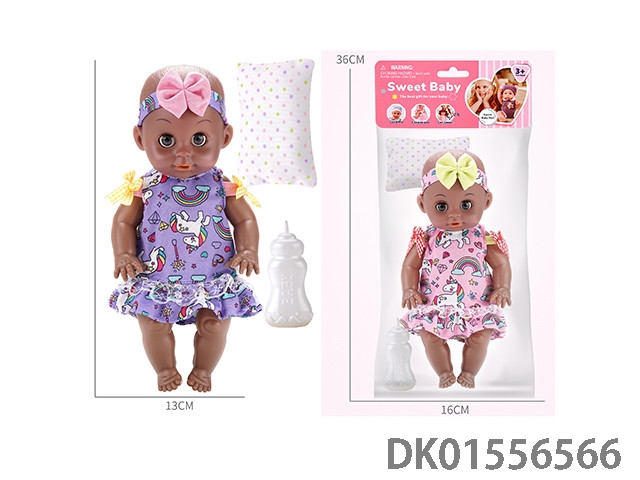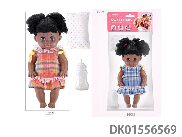31CM(吹气身喝水撒尿)肩带裙黑人娃娃+枕头+奶瓶