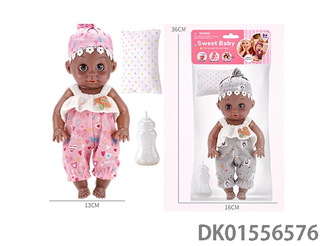 31CM(吹气身喝水撒尿)吊带裤黑人娃娃+枕头+奶瓶