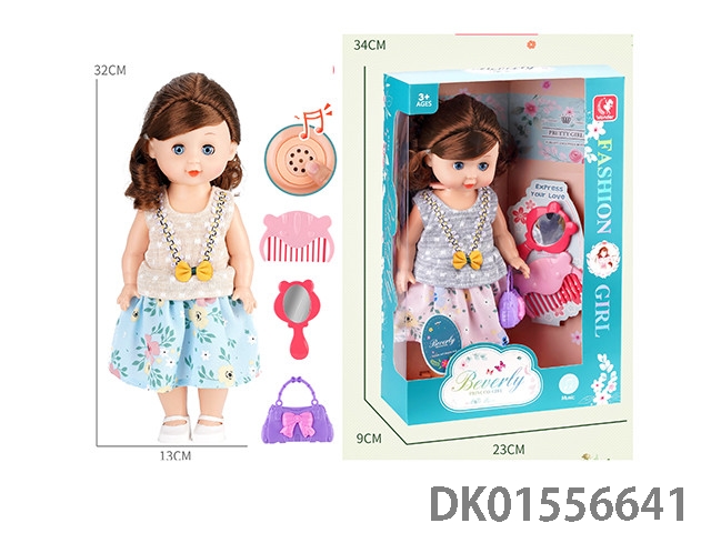31CM(吹气身喝水撒尿)肩带裙白人娃娃+枕头+奶瓶