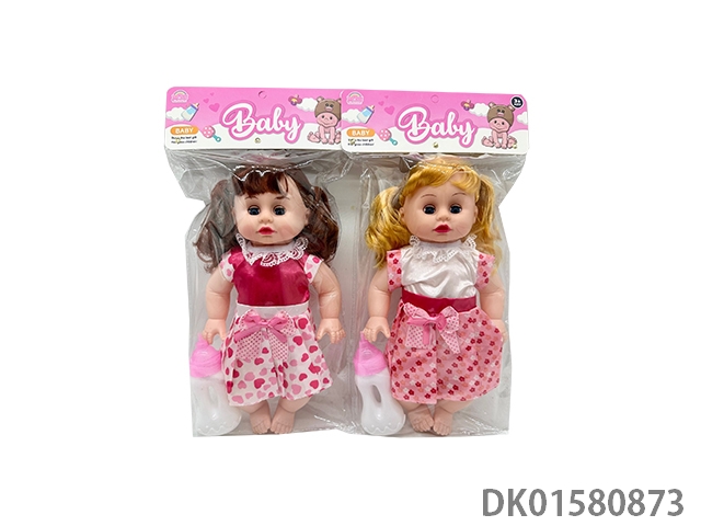 14寸活动眼睛坐姿女娃(衣服2款)功能:4声IC、奶瓶