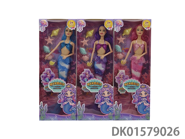 11.5寸实身9关节时尚美人鱼+海洋生物配件 3款混装