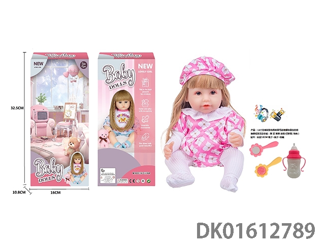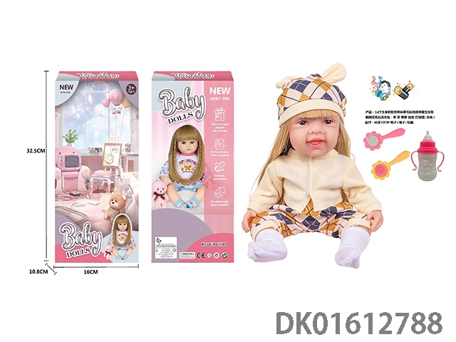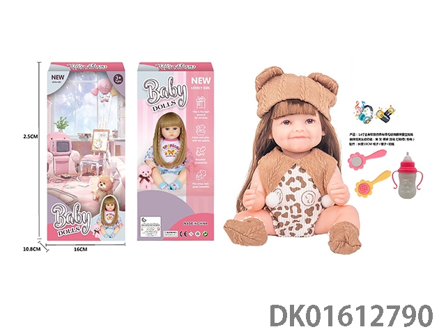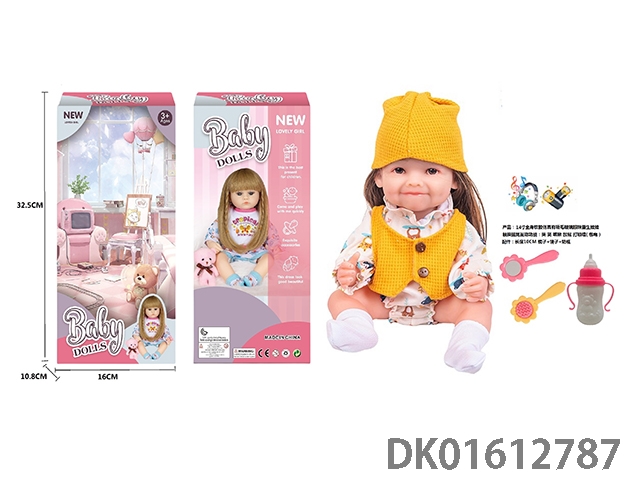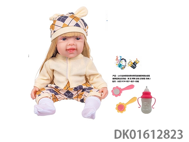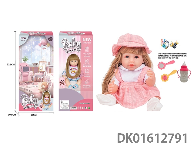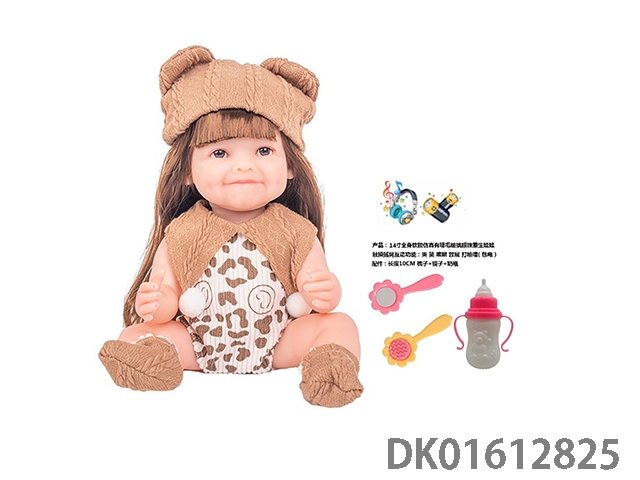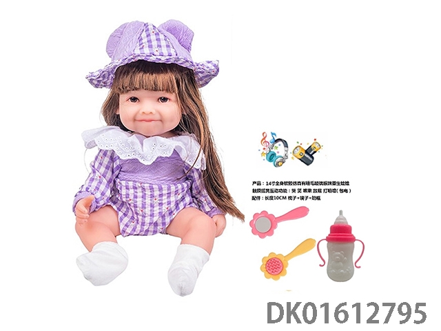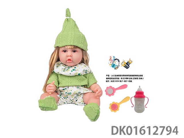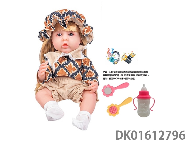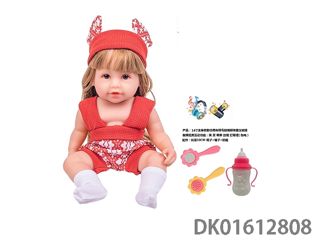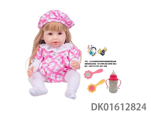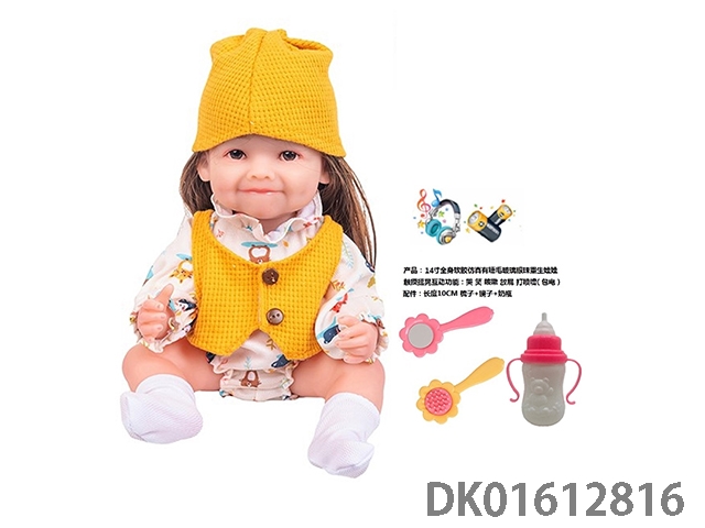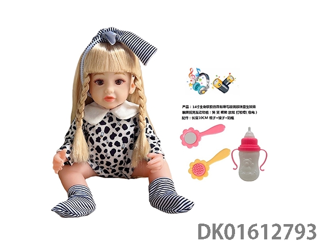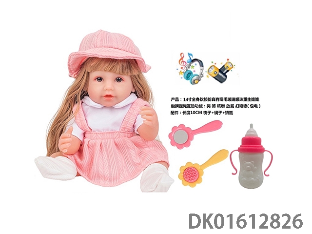 14寸全身软胶仿真有睫毛玻璃眼珠重生娃娃带梳子镜子奶瓶(触摸摇晃互动功能:哭 笑 咳嗽 放屁 打喷嚏)