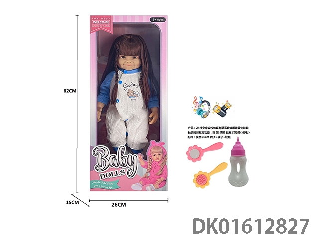 24寸全身软胶仿真有睫毛玻璃眼珠重生娃娃带梳子镜子奶瓶(触摸摇晃互动功能:哭 笑 咳嗽 放屁 打喷嚏)