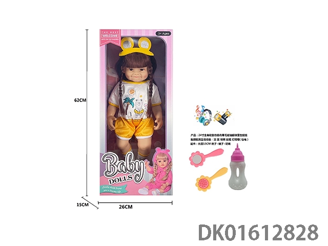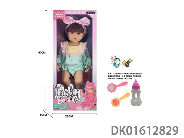 24寸全身软胶仿真有睫毛玻璃眼珠重生娃娃带梳子镜子奶瓶(触摸摇晃互动功能:哭 笑 咳嗽 放屁 打喷嚏)