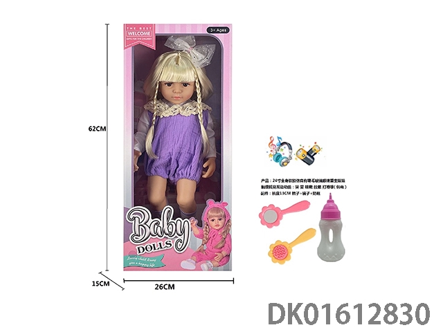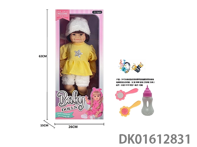 24寸全身软胶仿真有睫毛玻璃眼珠重生娃娃带梳子镜子奶瓶(触摸摇晃互动功能:哭 笑 咳嗽 放屁 打喷嚏)