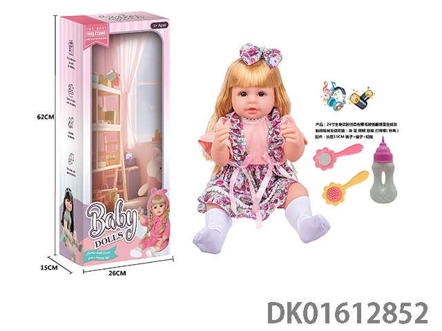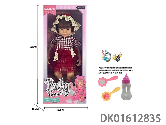 24寸全身软胶仿真有睫毛玻璃眼珠重生娃娃带梳子镜子奶瓶(触摸摇晃互动功能:哭 笑 咳嗽 放屁 打喷嚏)