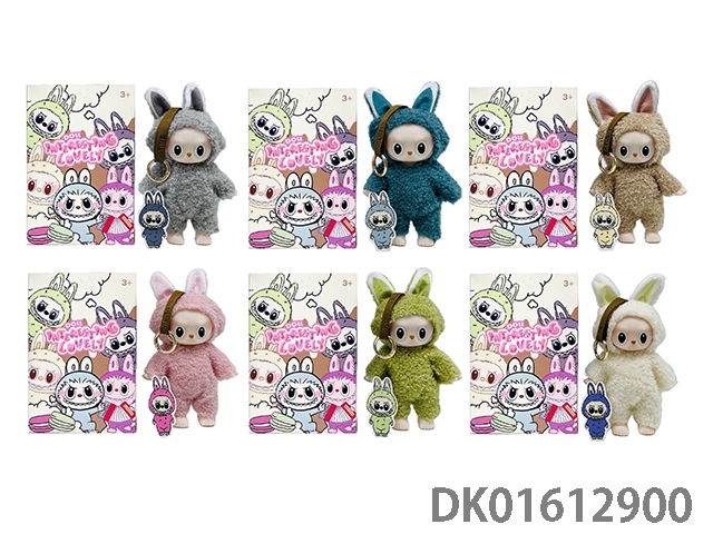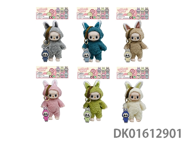 卡头袋7寸高品质毛绒搪胶拉布布心动马卡龙系列娃娃配钥匙扣(6色混装)