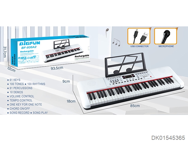 61键双喇叭/数码显示/电子琴白色/带USB线/麦克风/乐谱架