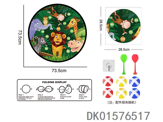 动物世界可折叠镖靶 粘粘球布标靶73.5CM(图案可定制)6球2镖1钩