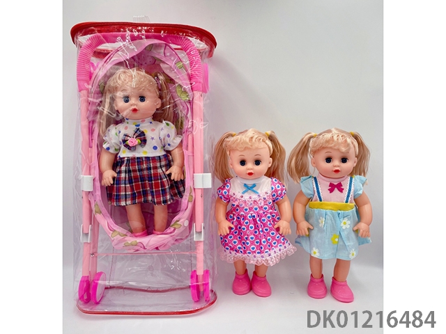 过家家14寸空身公仔带4声IC配铁推车奶瓶